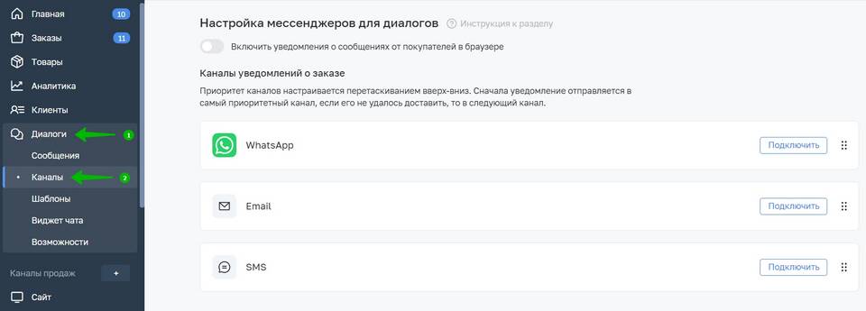 - Выберите вкладку "Уведомления"